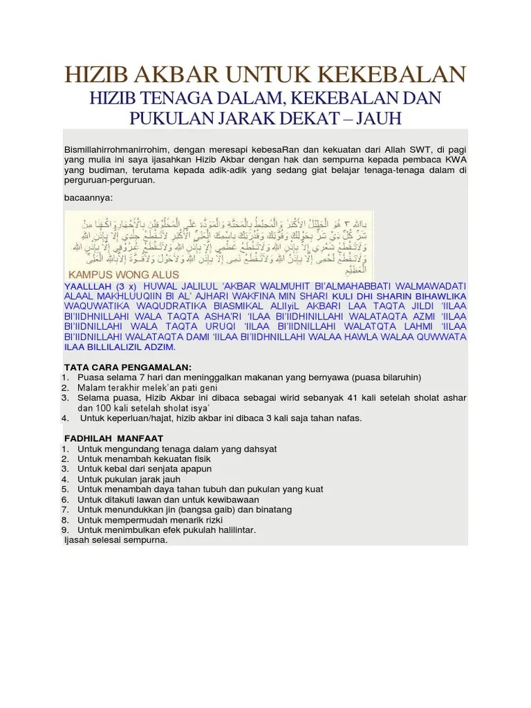 Khodam Hizib Akbar - Red Magic Book Aranarak Googlede Bulundu Pdf Txt - · suffice to recite 1 time at dawn and dusk.. Tapi kami punya ciri masuk dalam khasanah supranatural secara agamais, sehingga syahadat & Didatangkan dari rahasia urusan ilahiyah yang terkadang banyak diminati oleh sebagian kalangan ahli mujahadah dan riyadlah. Dengan cara di wiridkan 7 hari. This prayer will satisfy all your desires. Agar pembaca tidak penasaran berikut ini kami ijzahkan amalan hizib…